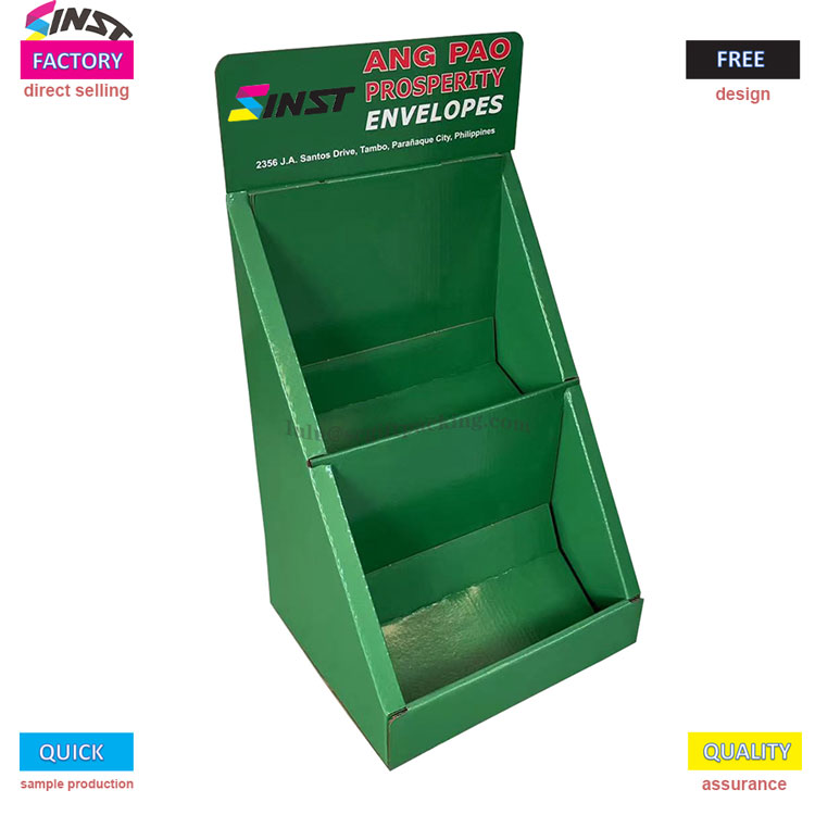 این جعبه نمایشگر کاغذ دسک تاپ پاکت پاکت از مواد سبک وزن سازگار با محیط زیست ساخته شده است ، با یک رنگ سبز روشن و رنگ تازه که کاملاً مطابق با سبک های مختلف دکوراسیون فروشگاه است. ساختار پله سه سطح از نظر علمی به مناطق تقسیم می شود ، که می تواند جعبه های هدیه پاکت را به طور همزمان نشان دهد. طراحی منحصر به فرد مونتاژ Buckle اجازه می دهد تا نصب و جداسازی فقط 3 ثانیه طول بکشد. پس از تاشو ، ضخامت فقط به اندازه کف دست است و آن را به ویژه برای گردش نمایشگاه ، تعادل کارایی نمایش و راحتی لجستیک مناسب می کند.