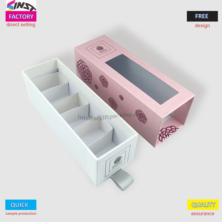 بسته بندی جعبه هدیه کشویی سفت و سخت کشویی لوکس برای روغن ضروری به عنوان یک جعبه هدیه دو رنگ طراحی شده است که دارای برخورد رنگهای صورتی و سیاه برای ایجاد یک احساس ساده و مجلل است - جعبه صورتی با گلهای بنفش عمیق/الگوهای بنفش آراسته شده است و با یک پنجره شفاف برای نمای مستقیم محتویات همراه است. پوشش داخلی دارای یک تقسیم کننده سفید و طراحی برگه کشش است که باعث می شود استخراج آسان فقط با یک کشش ملایم باشد. پنج محفظه جداگانه برای ذخیره جواهرات ، نمونه های زیبایی یا بطری های پروپولیس 30 میلی لیتر در دسترس است و از محیط تمیز و بدون نگرانی اطمینان حاصل می کند. می توان به عنوان جعبه هدیه چسب ناخن ، جعبه هدیه رژ لب ، جعبه هدیه نمونه و غیره استفاده کرد.